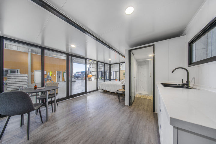 Discover DesignerPod™ V3 — a 23m² blend of modern design and smart functionality, starting from $37,500. This expandable cabin is built for effortless living: transport, slide out, and it’s ready. Floor-to-ceiling glass windows flood the space with natural light, while the spacious layout and elegant finishes redefine portable luxury living.